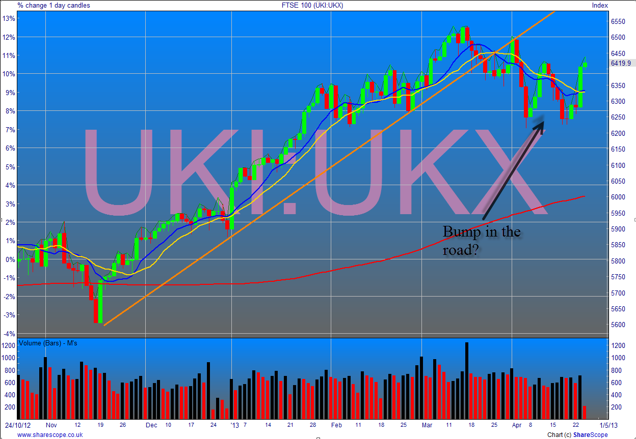 change is the chart of the FTSE which shows a very interesting, lumpy picture.